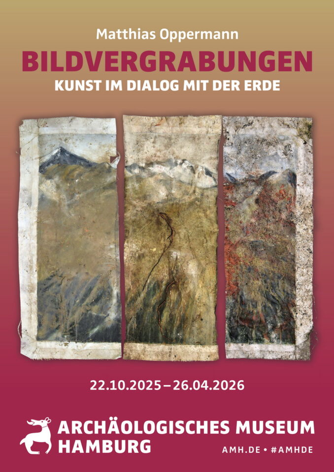 Vom 22. Oktober 2025 bis 26. April 2026 ist der Hamburger Künstler Matthias Oppermann zu Gast im Archäologischen Museum Hamburg. Mit der Ausstellung „Bildvergrabungen – Kunst im Dialog mit der Erde“ lädt das Museum dazu ein, Kunst einmal anders zu sehen. „Bildvergrabungen“ ist ein Projekt an der Grenze zwischen Kunst und Natur, zwischen Zerstörung und Transformation: Matthias Oppermann hat 2017 elf seiner Gemälde in 48 Fragmente zerschnitten. Diese Fragmente wurden anschließend an unterschiedlichsten Orten der Welt vergraben. Nach mehreren Jahren wurden sie wieder ans Tageslicht gebracht. Die Ausstellung zeigt nun die Ergebnisse dieses ungewöhnlichen künstlerischen Langzeitprojekts.